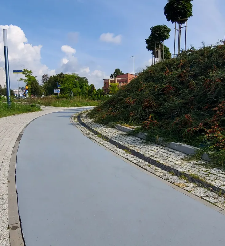 Choć powłoka TOPASFALT to nie to samo co tradycyjne kolorowe asfalty, oferuje równie atrakcyjne efekty wizualne, które z powodzeniem mogą zastąpić konwencjonalne rozwiązania, jednocześnie zapewniając znacznie lepszą trwałość. Dzięki zaawansowanej technologii TOPASFALT umożliwia wizualne wyodrębnienie różnych stref, takich jak ścieżki rowerowe czy chodniki, co znacząco poprawia organizację ruchu i bezpieczeństwo w przestrzeniach publicznych. Powłoka poliuretanowa dodatkowo zabezpiecza powierzchnię, co podnosi jej odporność na ścieranie, a także nadaje jej nowoczesny, elegancki wygląd. Takie rozwiązania pozwalają na tworzenie spójnych przestrzeni publicznych, które są nie tylko funkcjonalne, ale również estetyczne i bezpieczne.