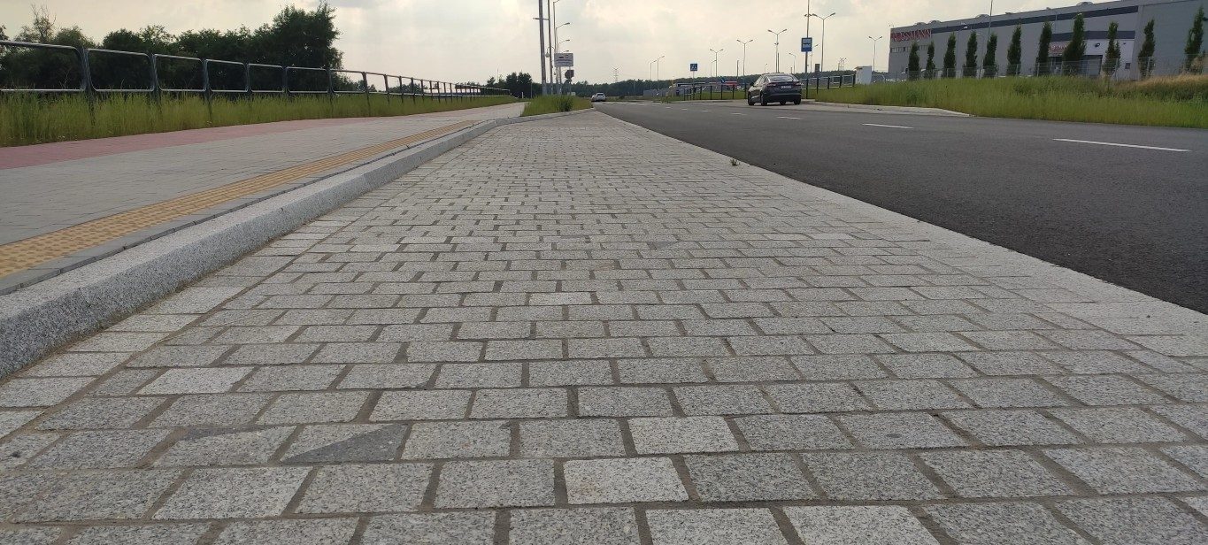 Trwałe wypełnienie spoin kostki granitowej, które wytrzymuje obciążenia wielotonowych pojazdów podczas zatrzymywania i ruszania.